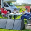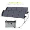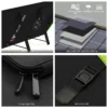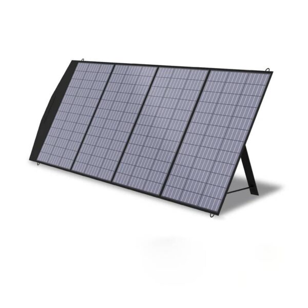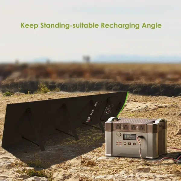 The foldable solar panel 200W constructed with durable and waterproof IP66 nylon and adjustable bracket. It can help your devices receive the most effective sunlight safely.