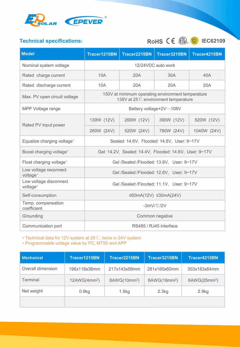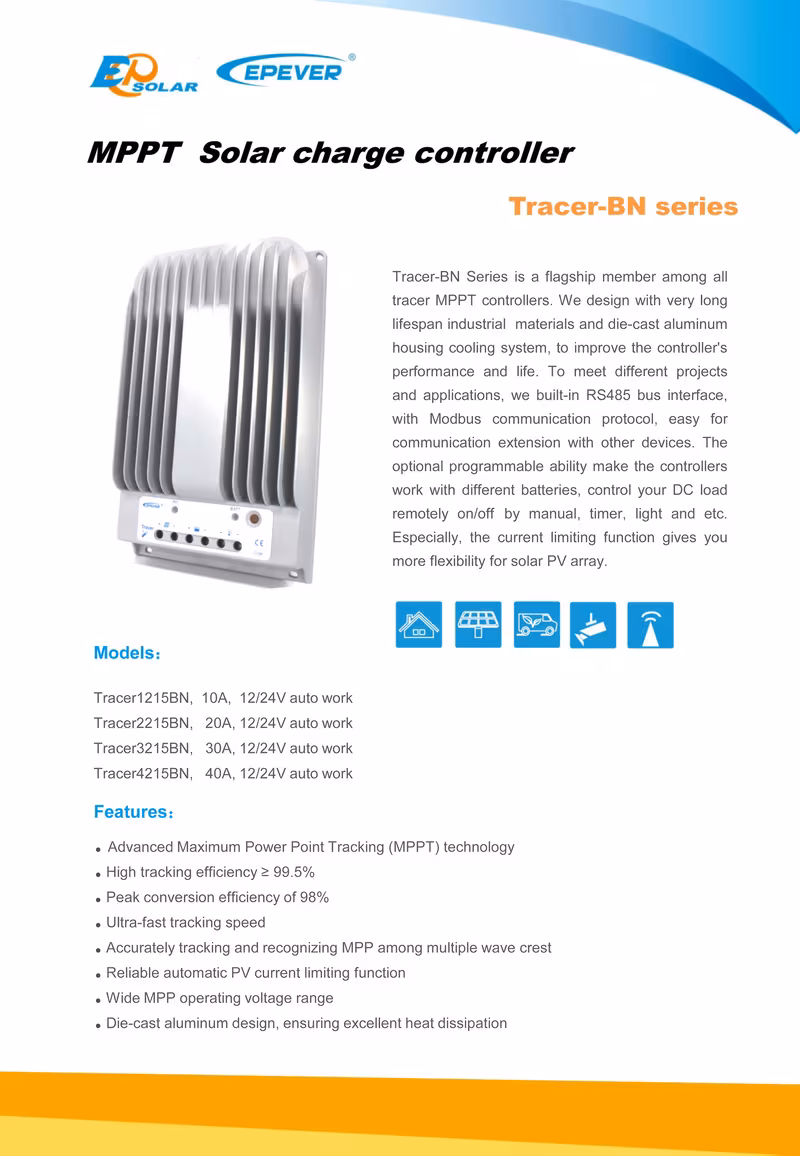 EPEVER Tracer-BN Series is a flagship member among all Tracer MPPT controllers.