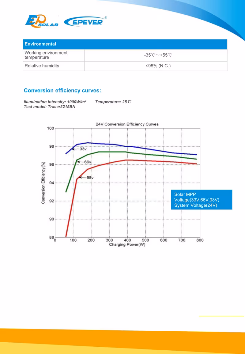 ● Advanced Maximum Power Point Tracking (MPPT) technology , High tracking efficiency ≥ 99.5% ,Peak conversion efficiency of 98% ,Ultra-fast tracking speed