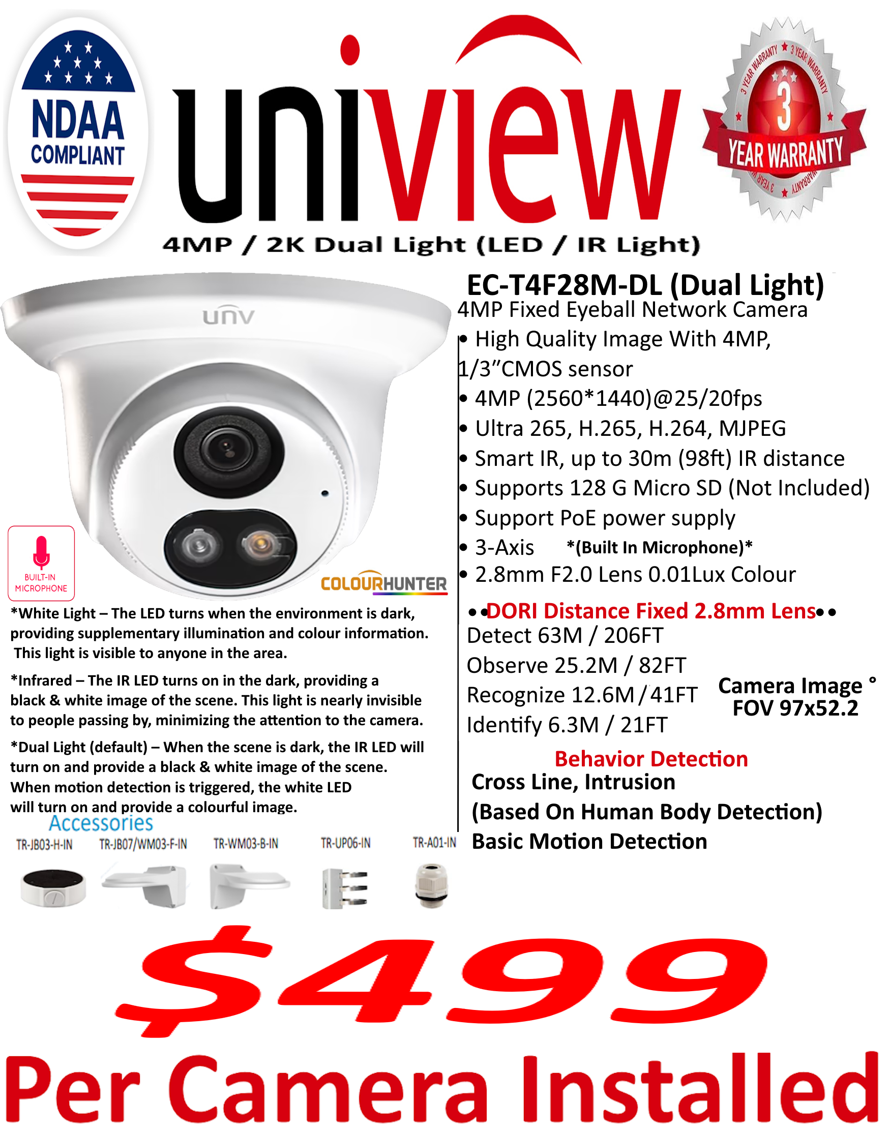 UNV 4MP EC-TF28M-DL *Built In Mic* (Dual Light Kit Camera) $499 Per Camera.