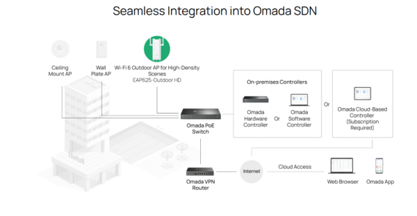 | Cloud Access | Yes. Require the use of OC300, OC200, the Omada Software Controller, or Omada Cloud-Based Controller. |