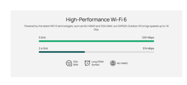 | Signal Rate | • 5 GHz: Up to 1201 Mbps • 2.4 GHz: Up to 574 Mbps |